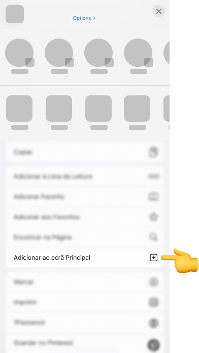 2. No menu aberto, deslize para baixo, localize o botão Adicionar ao ecrã inicial e toque.